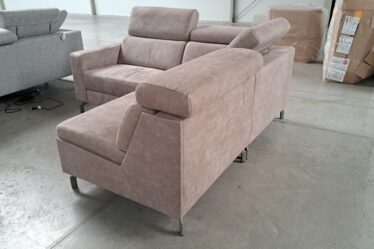 Narożnik posiada regulowane zagłówki, podłokietnik oraz elektrycznie wysuwane siedzisko na głębokość ok. 25 cm