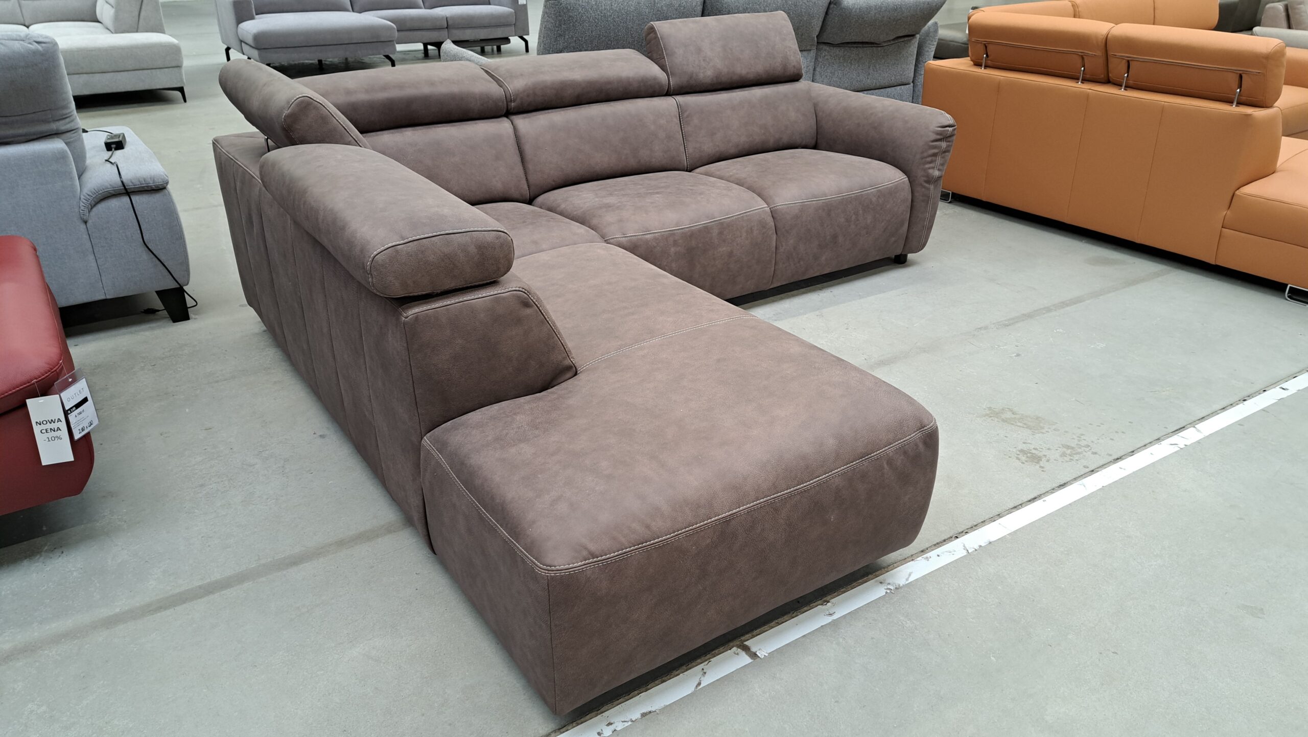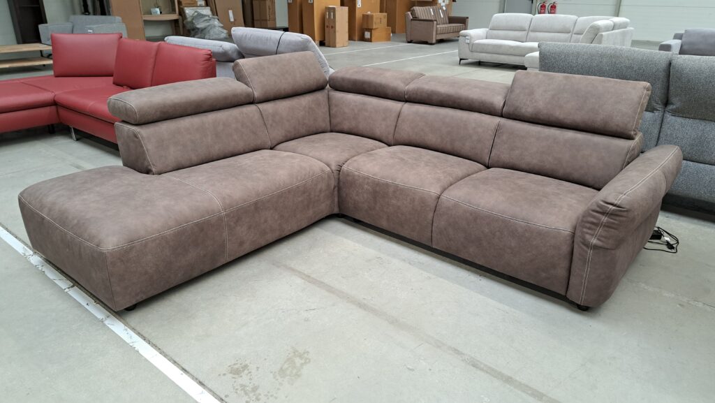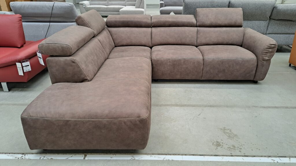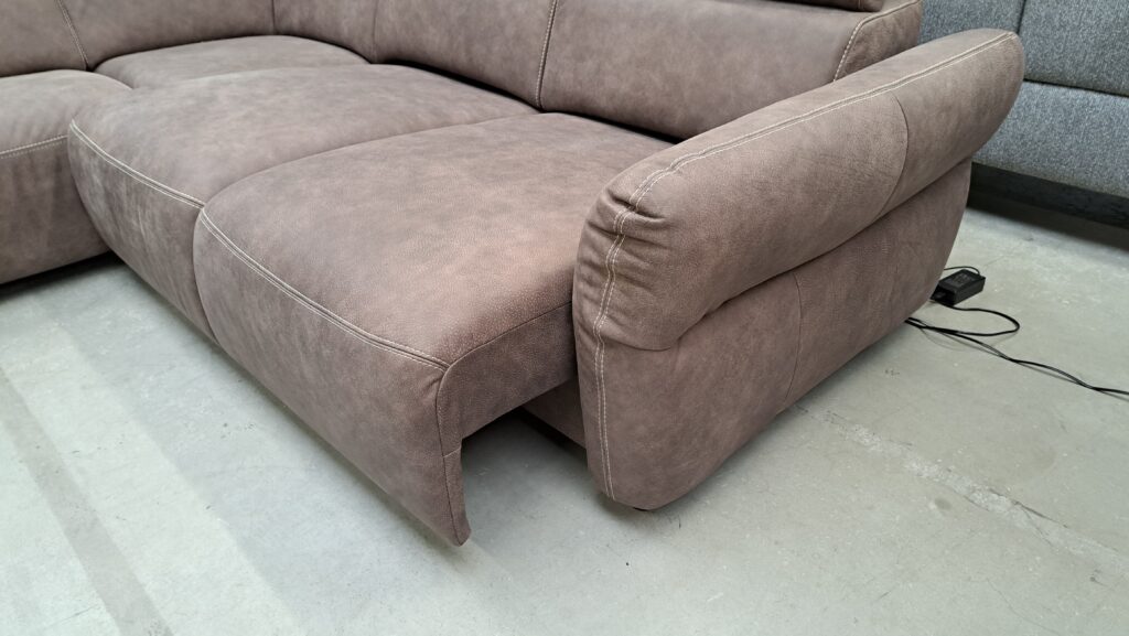 Narożnik posiada regulowane zagłówki oraz elektrycznie wysuwane siedzisko na głębokość około 25 cm.