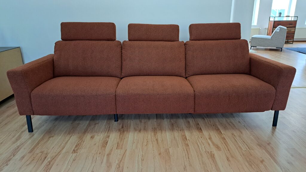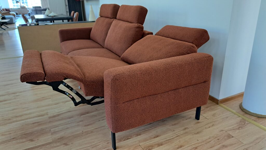 Sofa posiada jedno siedzisko z funkcją relaksu elektrycznego. Dodatkowo mebel wyposażony w akumulator- nie ma potrzeby ciągłego podłączenia do prądu. Zagłówki zdejmowane i regulowane.