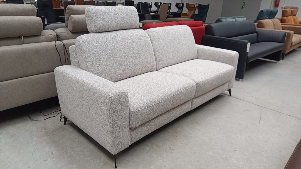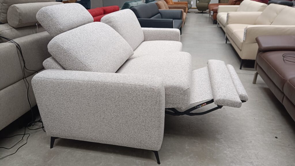 Sofa posiada jedno siedzisko z funkcją relaksu elektrycznego. Zagłówek zdejmowany