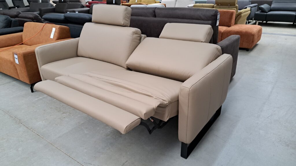 Sofa posiada jedno siedzisko z funkcją relaksu elektrycznego. Zagłówki zdejmowane.