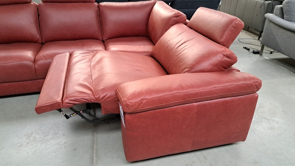 Narożnik posiada jedno siedzisko z funkcją relaksu elektrycznego. Zagłówki zdejmowane.